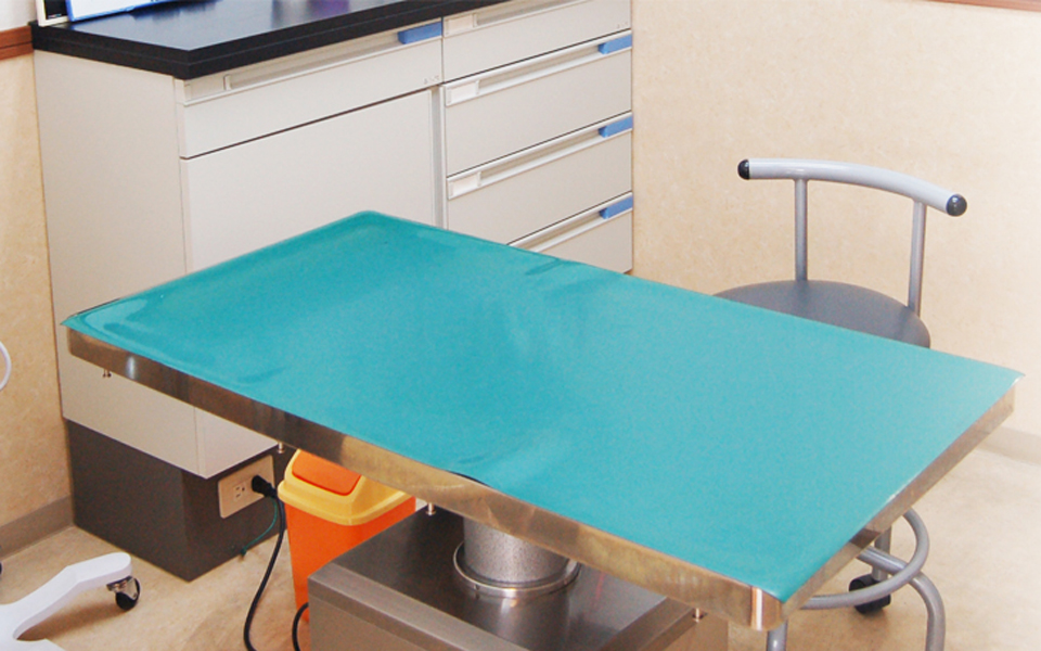 病状をお聞きして診察をいたします。まず皆様のペットが初めにのるのが診察台です。